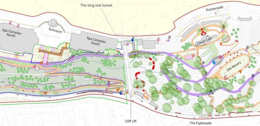 The key building work which will enable this route to be completed is the restoration and reopening of the long lost tunnel under the Cliff Lift.