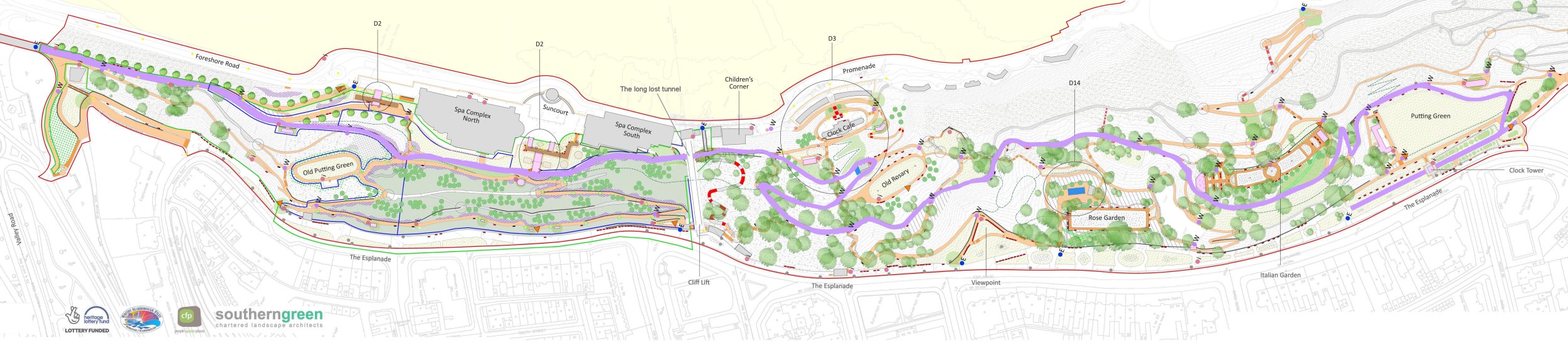 The “Most Accessible Path” refers to the development of a fully accessible path enabling all visitors to explore the entire length of the gardens (from the Spa Bridge all the way through to Holbeck).